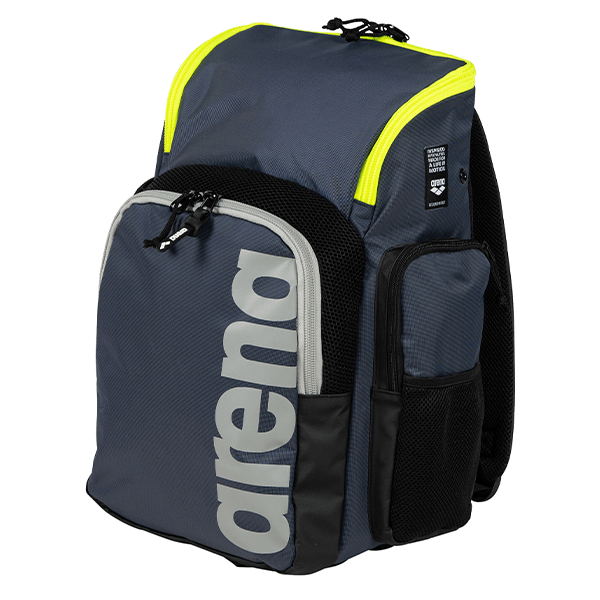 Ruksak Arena Spiky III 35 (plavi) – Izrađen s vodonepropusnim dnom. Mesh umetci omogućavaju pohranjivanje mokre opreme; dva glavna prostrana odjeljka su upotpunjeni dodatnim prednjim džepom s patentnim zatvaračem za sigurno spremanje malih stvari.